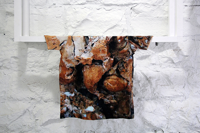 Archive of touch: touch of archive, 2015, 112cm x 152cm x 20cm (44" x 60" x 8"), site-dependent installation, enamel, wood frame, digital print on fabric